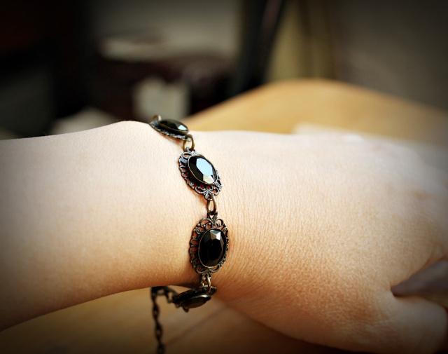 Sold - Filigree Faceted Black Onyx Vintage Style Bracelet