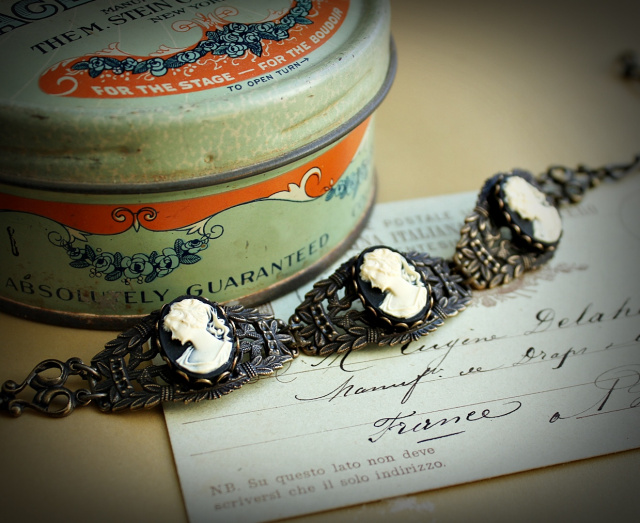 Sold - Vintage Style Black & Ivory Cameo Bracelet